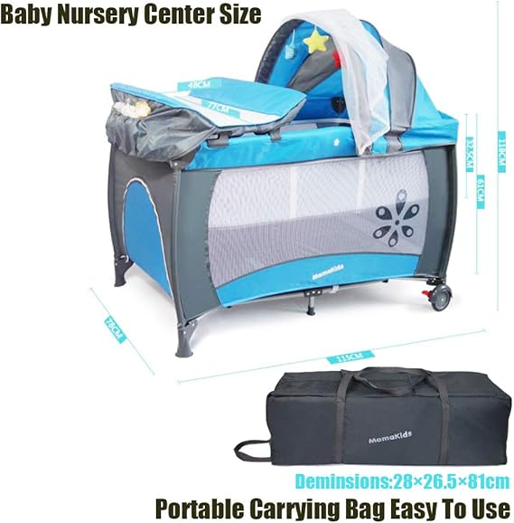 all -in-one baby haven! bassinet, changing table, activity center, travel cot, net, and hanging toys- for sleep, play, and convenience!